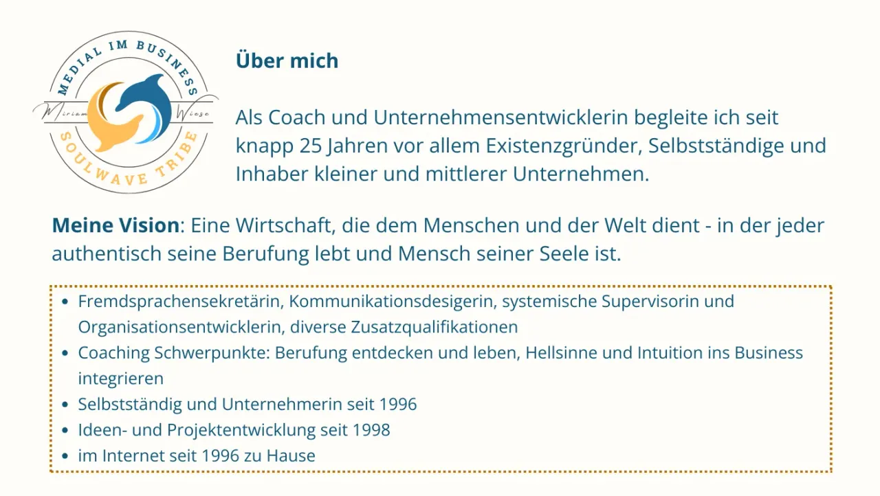 Du bist wahrnehmungbegabt, hellsinnig, intuitiv und Unternehmer*in - aber weißt nicht, * wie es authentisch leben kannst * es in Dein Business integrierst * und damit erfolgreich und sinnerfüllt wirken kannst Du möchtest Teil einer neuen Wirtschaft sein, in der Berufung, Vision und Mission keine Worthülsen sondern ein Erfolgsversprechen mit Sinnerfüllung ist? Dann lade ich Dich herzlich in meine Community "Medial im Business" ein! Sei mit dabei, wenn wir beginnen, die Wirtschaft zu verändern und erfolgreich unsere Berufung leben und unsere Vision verwirklichen!