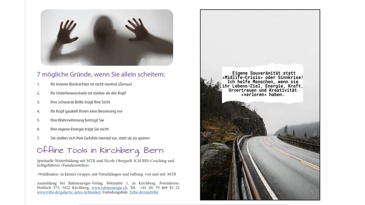 7 mögliche Gründe, wenn Sie allein bei Lebenskirsen scheitern: 1. Ihr innerer Beobachter ist nicht neutral (Zensur) 2. Ihr Unterbewusstsein ist stärker als der Kopf 3. Ihre schwarze Brille trügt Ihre Sicht 4. Ihr Kopf gaukelt Ihnen eine Besserung vor 5. Ihre Wahrnehmung betrügt Sie 6. Ihre eigene Energie trägt Sie nicht 7. Sie stellen sich Ihre Gefühle mental vor, statt sie zu spüren