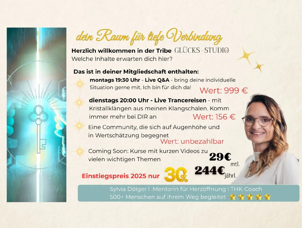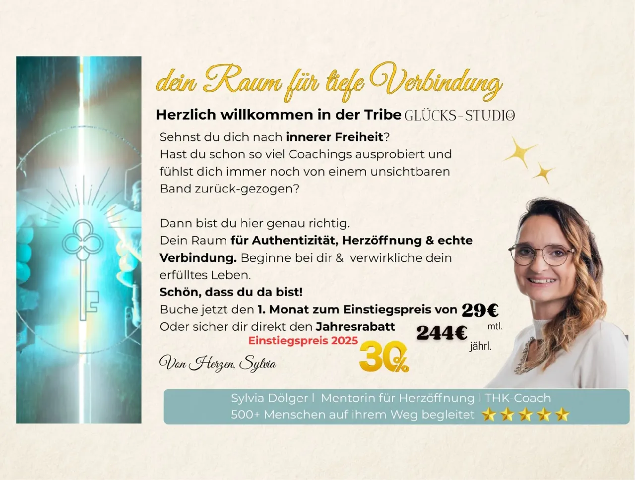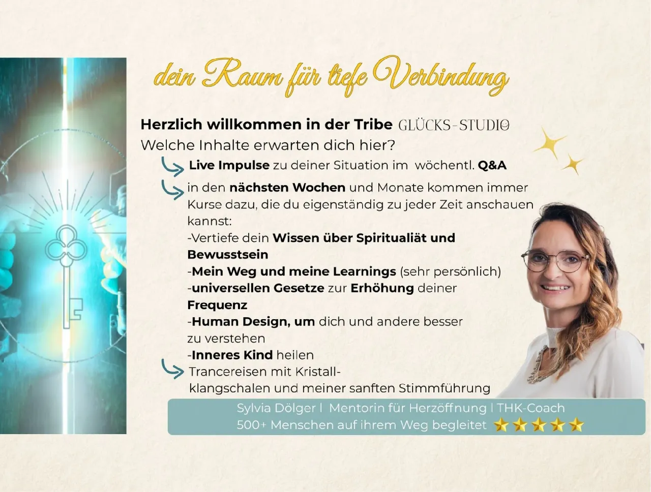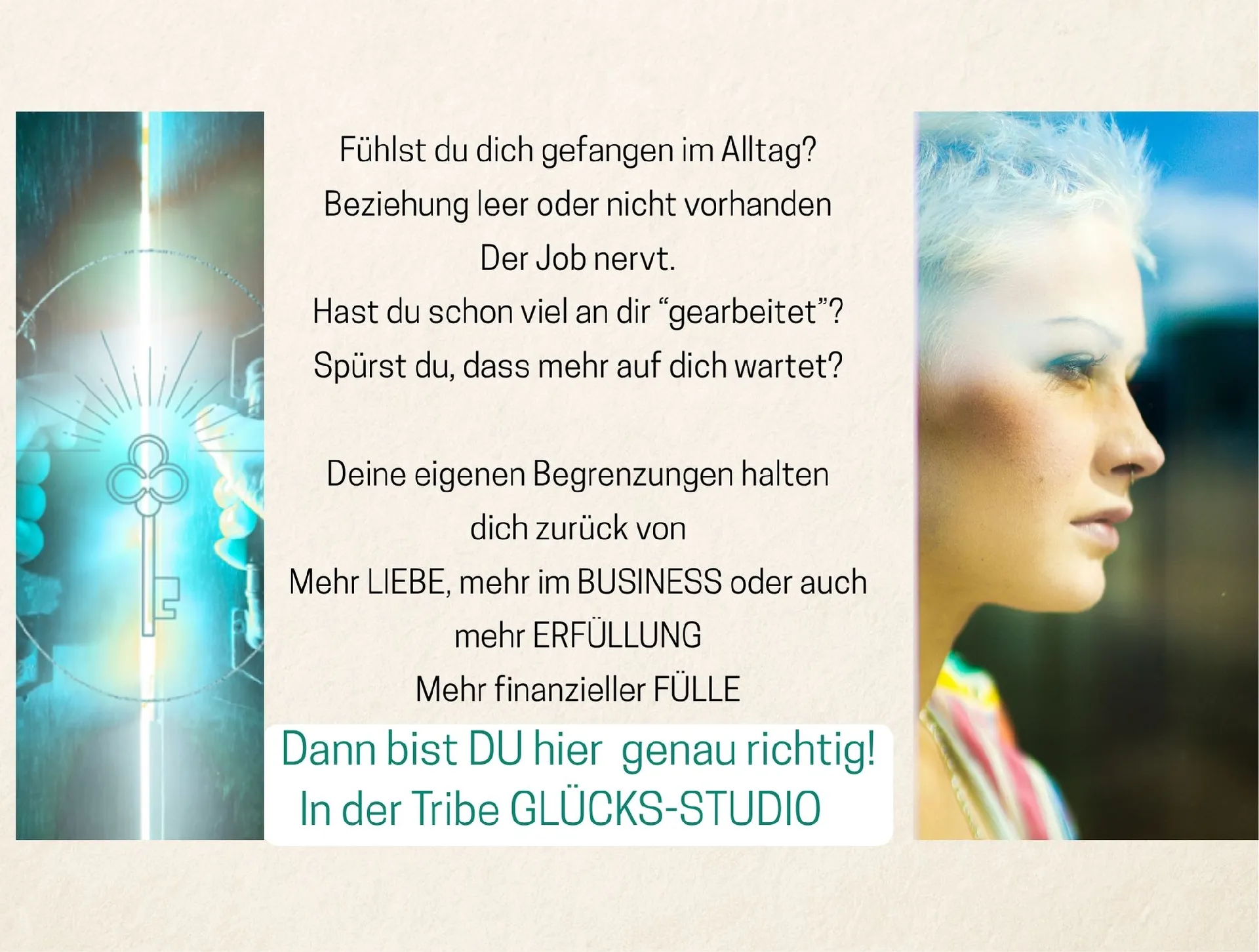 Dann komm in die Tribe GLÜCKS-STUDIO und starte deine Transformation.