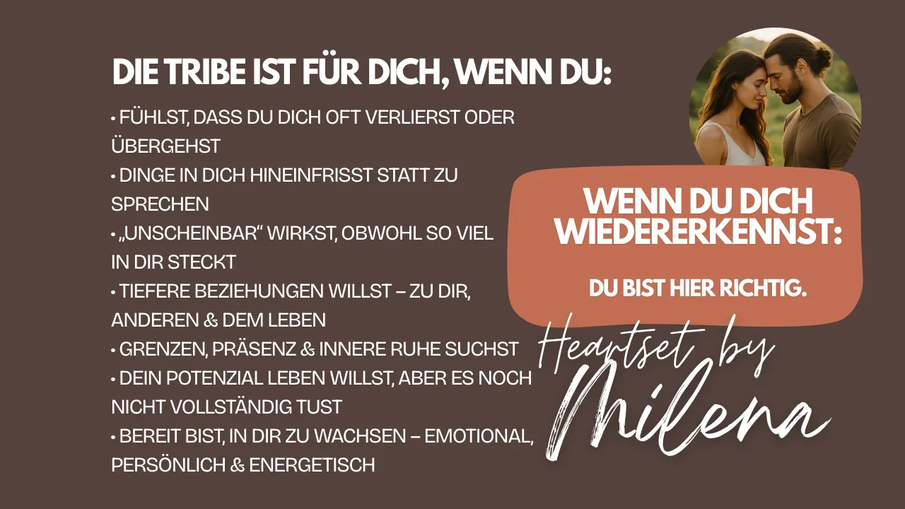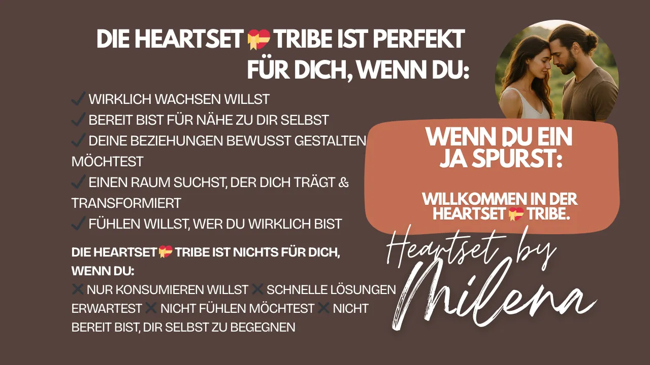 Die Heartset 💝 Tribe ist dein Raum, wenn du spürst, dass in dir mehr möglich ist – mehr Nähe zu dir selbst, mehr Selbstwert 💎, mehr Leichtigkeit, mehr Freude 💛, tiefere und erfüllendere Beziehungen und mehr Fülle auf allen Ebenen.