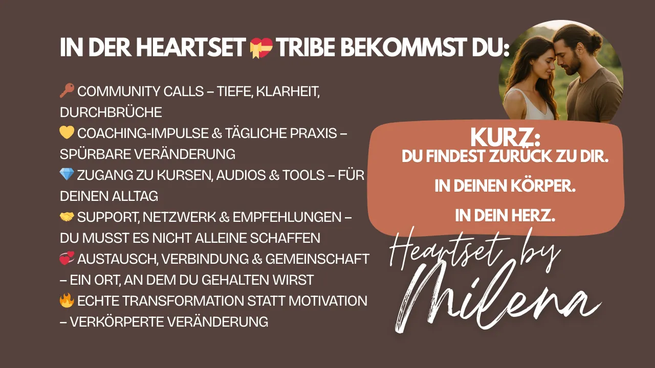 In der Heartset đź’ť Tribe bekommst du alles, was du brauchst, um wieder bei dir selbst anzukommen:
