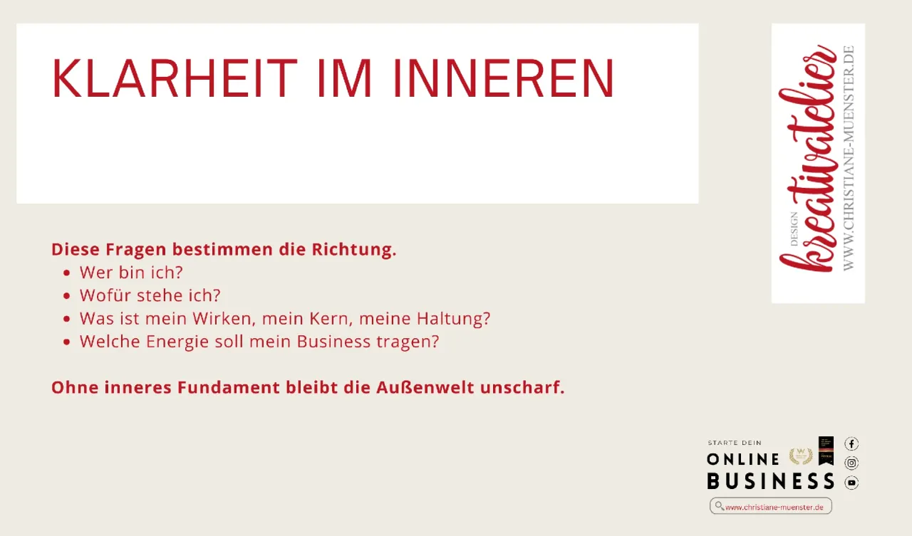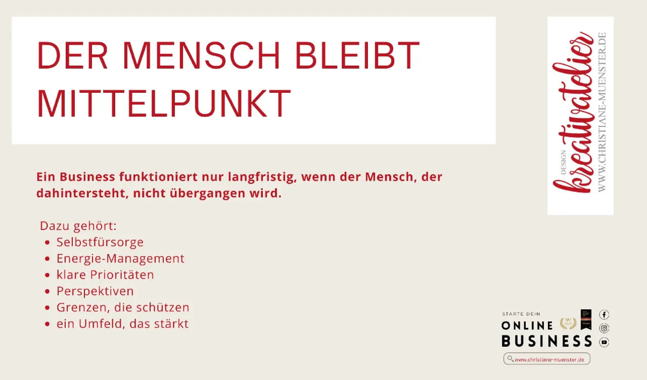 Willkommen in meiner Community Holistisches Business-Fulfillment auf Tribe. Du bekommst hier kostenfreie Einblicke im Businessaufbau, Mindset, Coaching, Workshops... Ich freue mich auf dich, sei dabei und lerne in deinem Tempo. Bis gleich :) --- Manchmal spüren wir, dass ein nächster Schritt ansteht – nur wissen wir noch nicht genau, wohin er führt. Und genau in solchen Momenten lohnt es sich, innezuhalten und Worte zu lesen, die uns innerlich ausrichten. Worte, die uns daran erinnern, wie viel in uns angelegt ist und wie viel leichter Wachstum sein darf, wenn wir uns in einem passenden Umfeld bewegen. Allzeit persönlichen Erfolg und Wachstum in allen Lebenslagen wünscht dir Christiane Münster