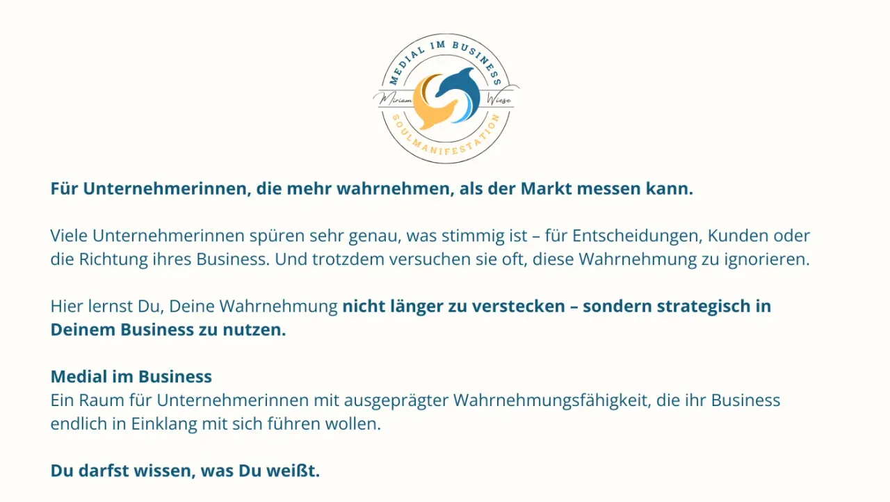Deine Wahrnehmung bleibt nicht länger ein persönliches Talent – sie wird Teil Deiner unternehmerischen Führung und zu echter Businesskompetenz.
