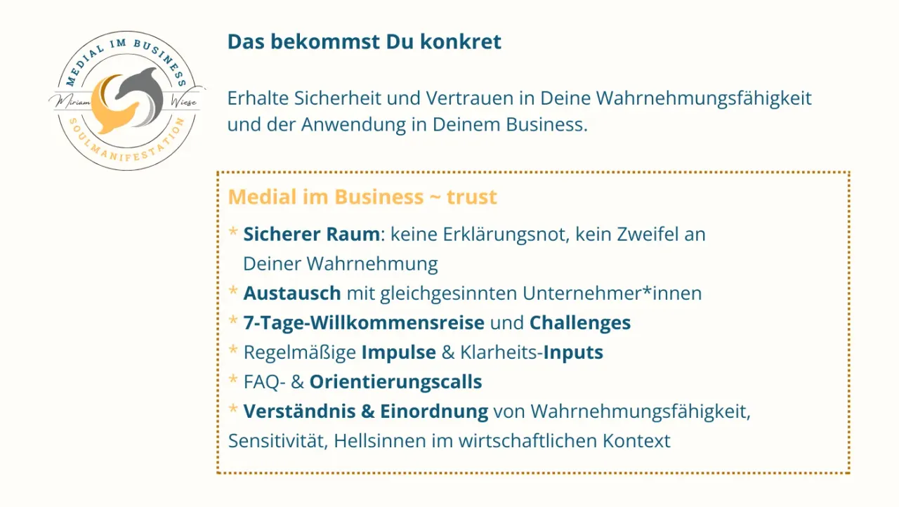 • strategische Business-Impulse zur Integration Deiner Wahrnehmung