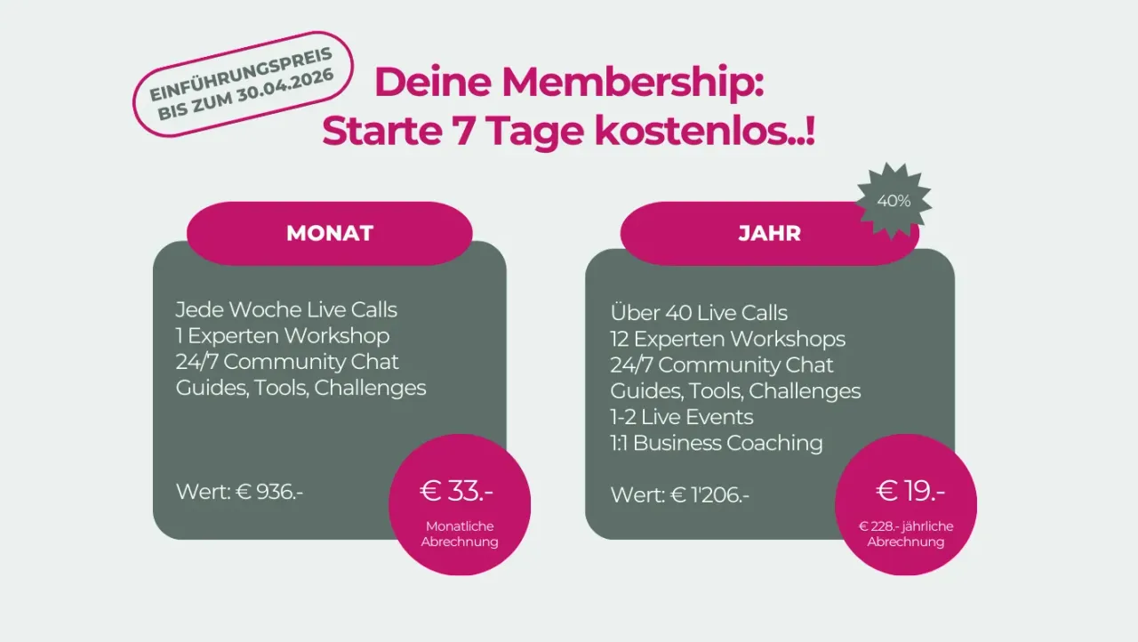 Wähle deine Mitgliedschaft zum Einführungspreis bis Ende April 2026 (jederzeit kündbar):